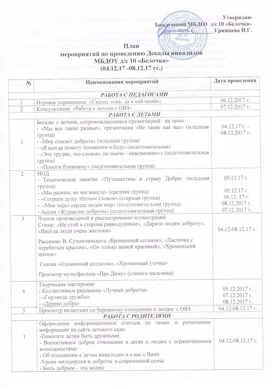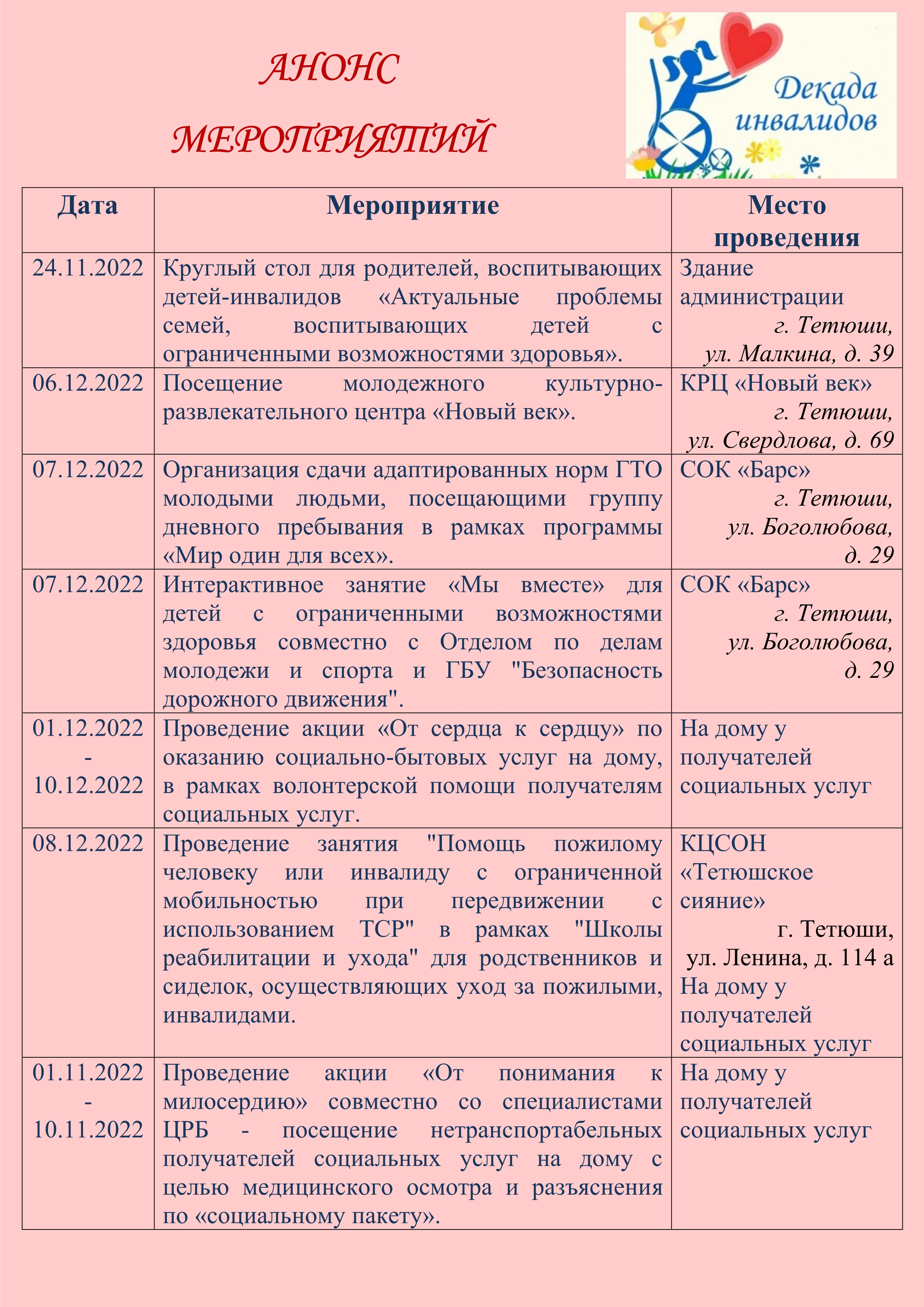 План декада инвалидов в доу