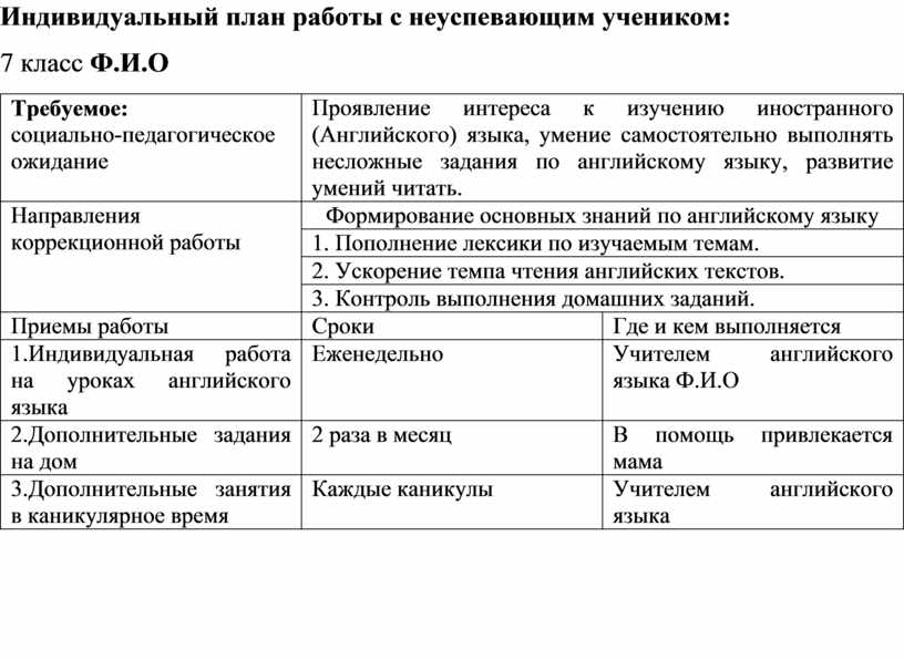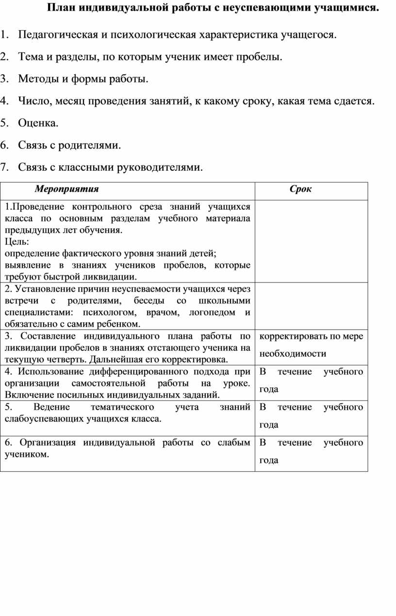 План индивидуальная работа со студентом 126 фото