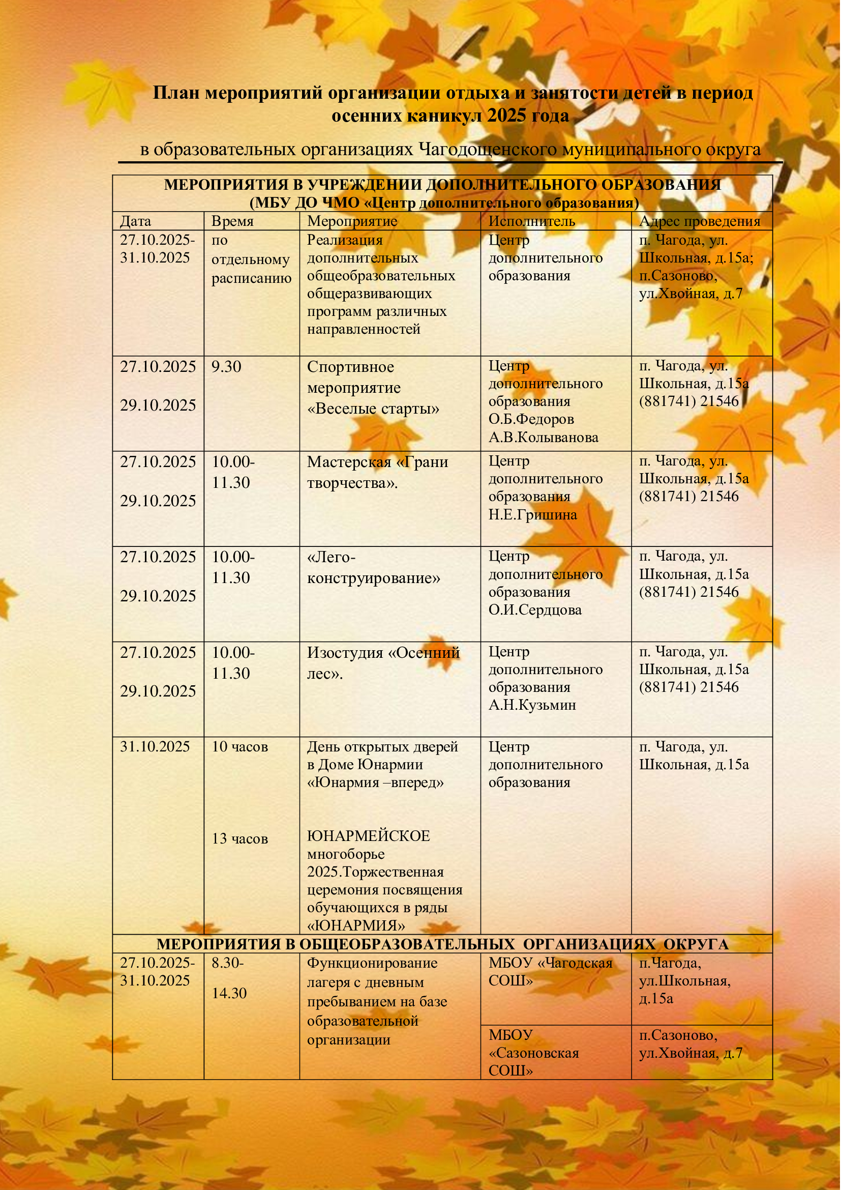 План мероприятий 1 сентября
