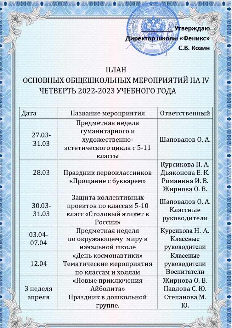 План мероприятий на 4 четверть 109 фотографий