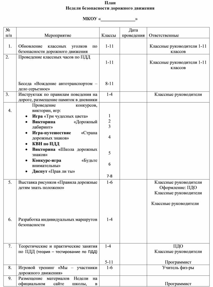 План мероприятий пдд в доу