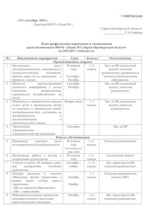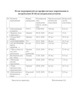 План мероприятий по наркомании в школе