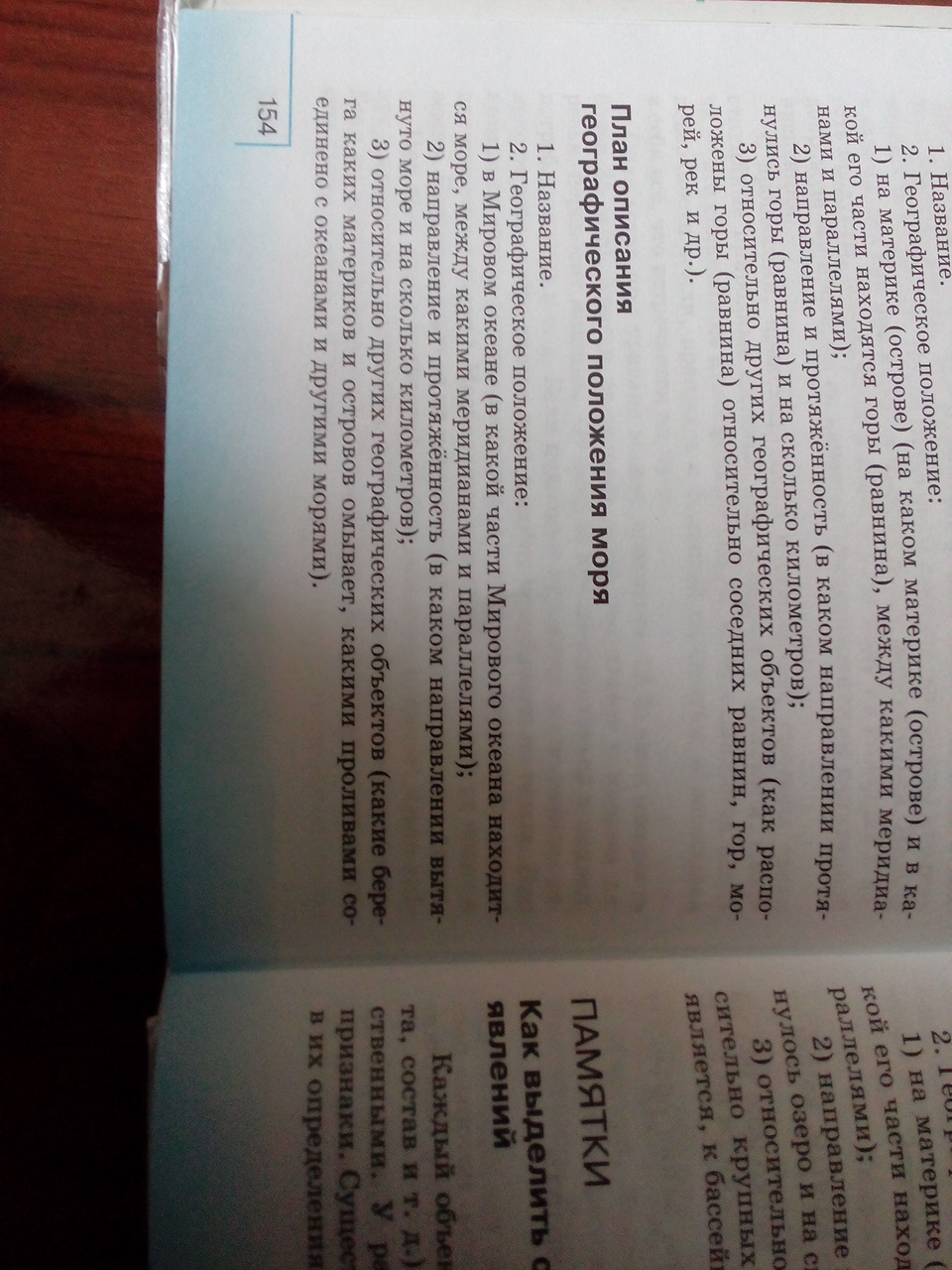 План описания морей 8 класс