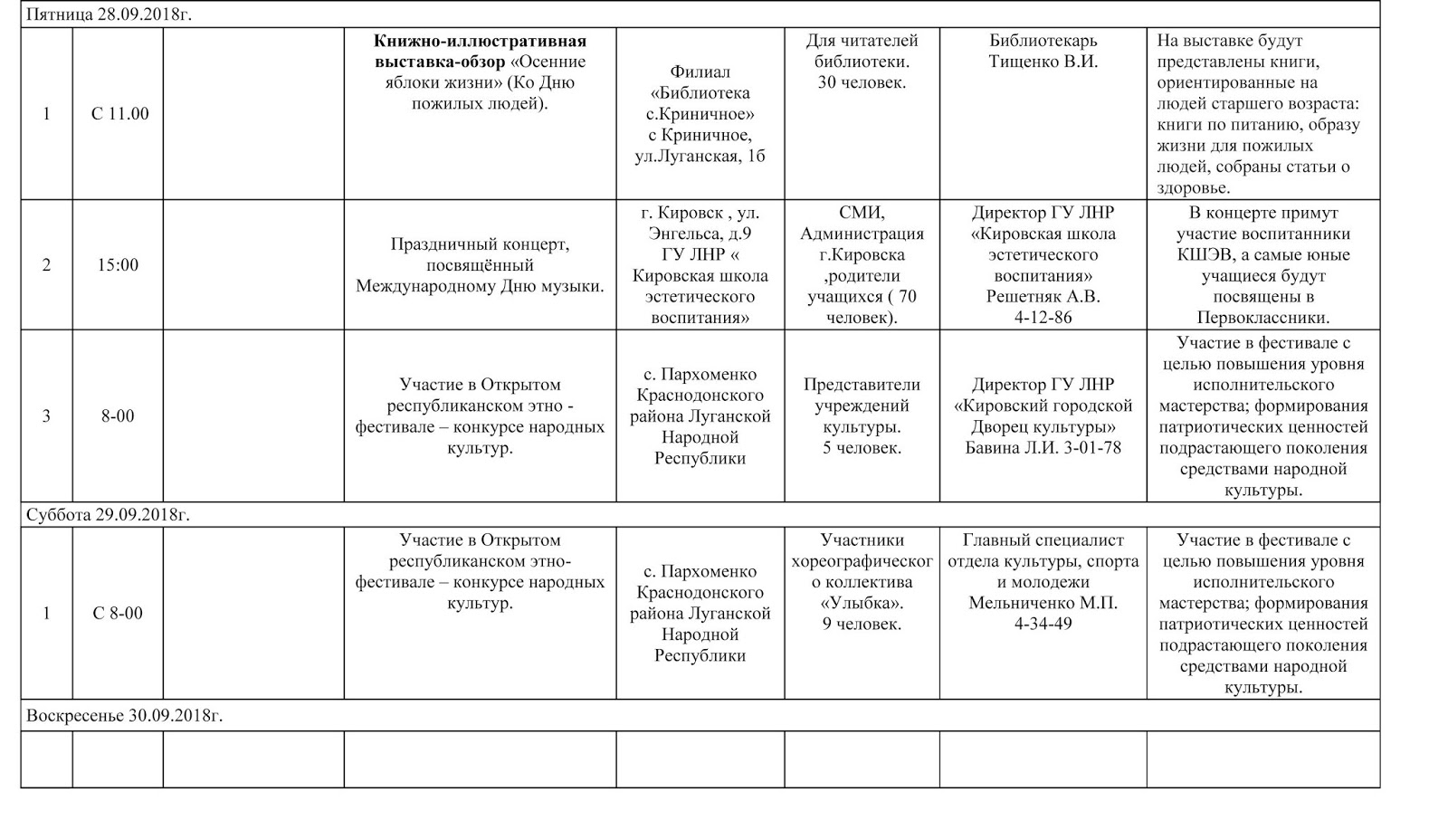 План проведения концерта
