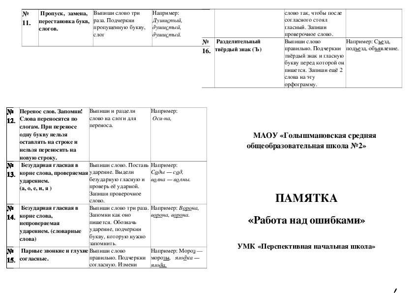 План работы памятка