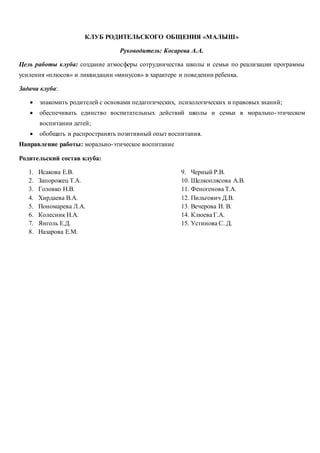 План родительского клуба