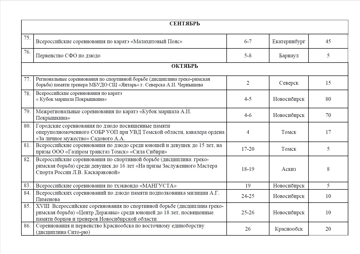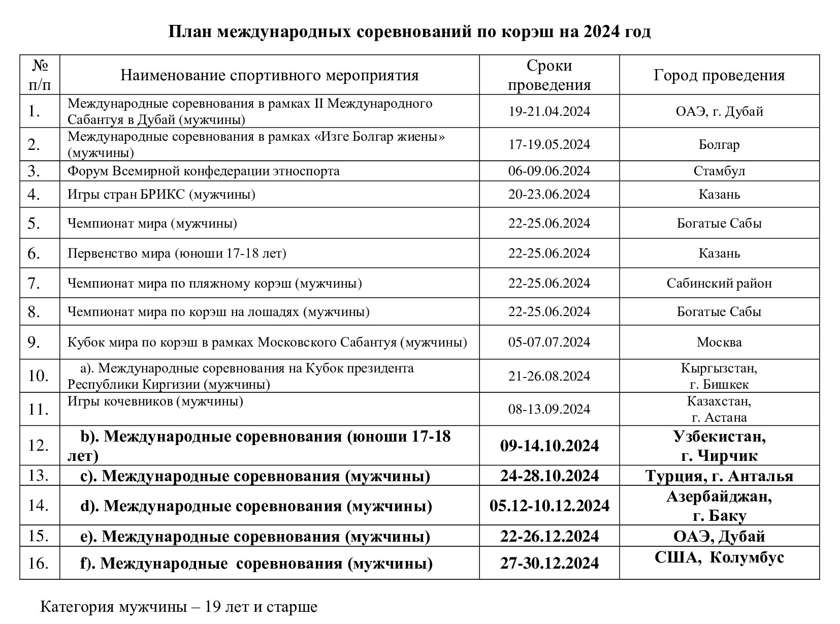 План состязания