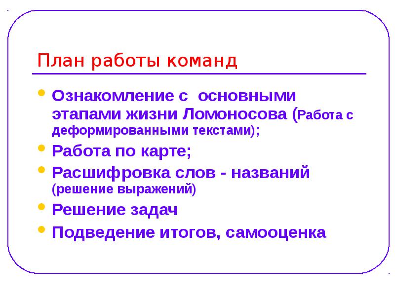 План жизни ломоносова