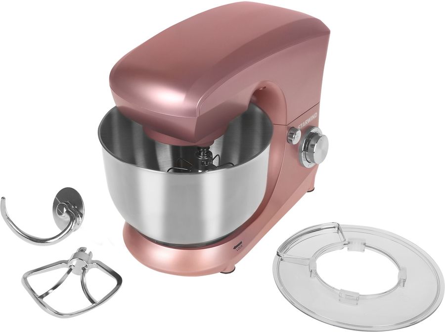 Планетарный миксер, Цвет розовый; Мощность 0,8 кВт; Объем чаши 4,8л; Регулировка скорости, 2 насадки для взбивания, 1 насадка для теста, крышка для чаши Серия: 50's style retro