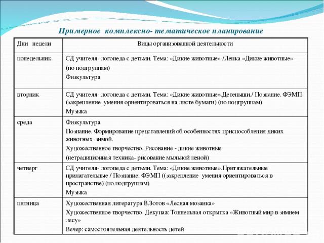 Планирование по теме птицы