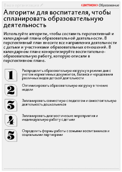 Планирование воспитателю по фгос