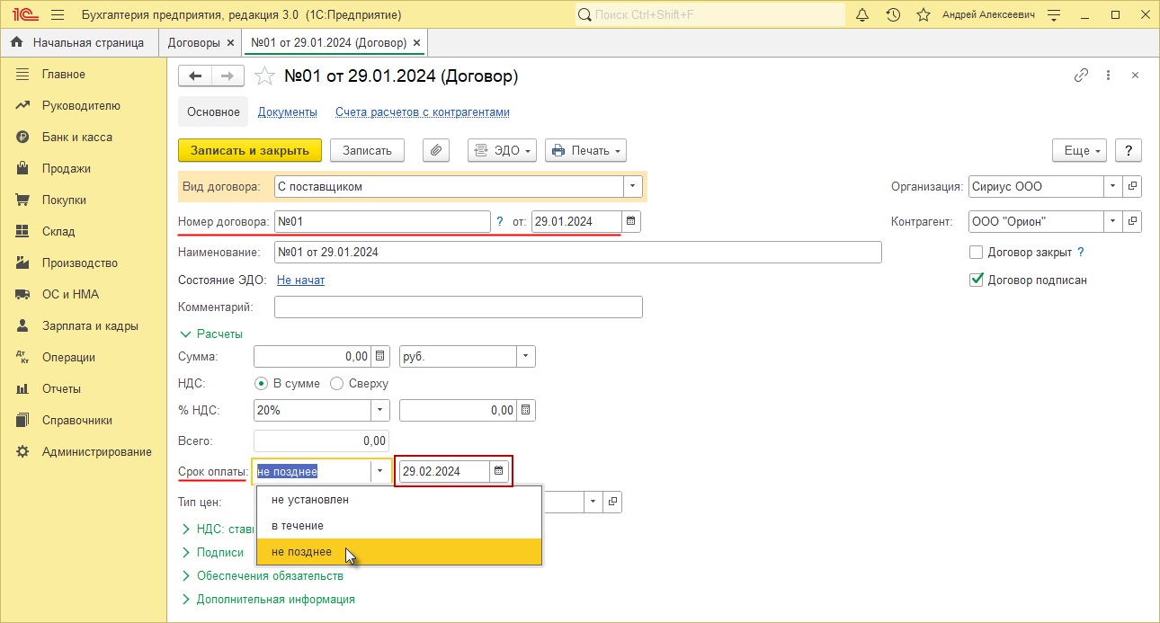 Планируемая дата выплаты в 1с