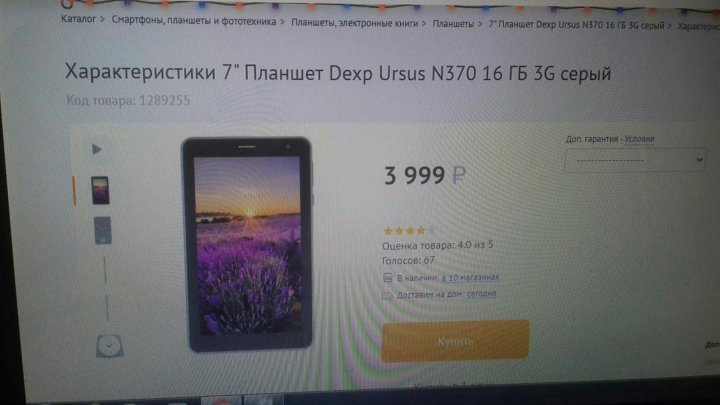Отзывы покупателей о 7" Планшет Dexp Ursus N370 16 ГБ 3G . . .