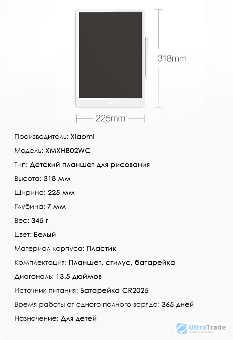 OZON предлагает выгодные цены и отличный сервис . Планшет для рисования Xiaomi LCD Writing Tablet 13 .5 " (XMXHB02WC) - характеристики, фото и отзывы покупателей . Доставка по всей России .