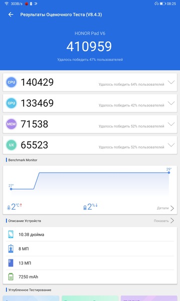Оценка надежности 10 .4" Планшет Honor Pad V6 128 ГБ черный . . .