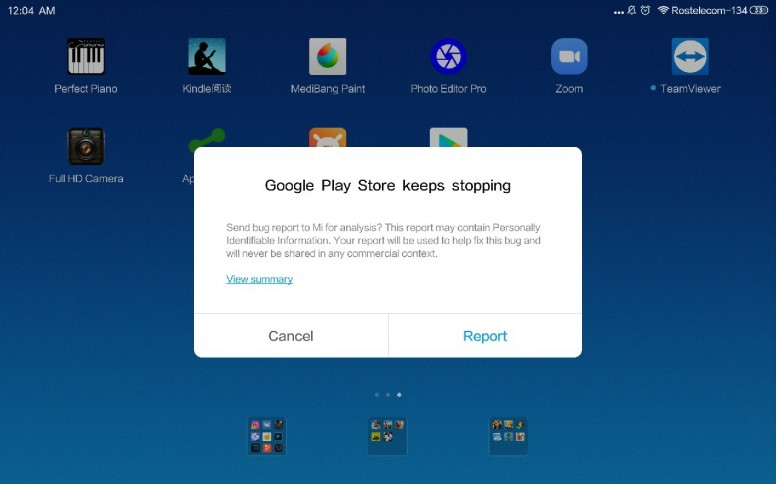 Планшет при включении пишет "ошибка в приложении"