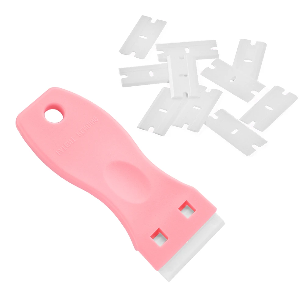 GsMJPFbBMHere you can buy Plastic Razor Blade Scraper Plastic Razor Scraper Tool with 10pcs Blades Hair Extension Tool for Removing Adhesive Labels with free delivery to your post office.