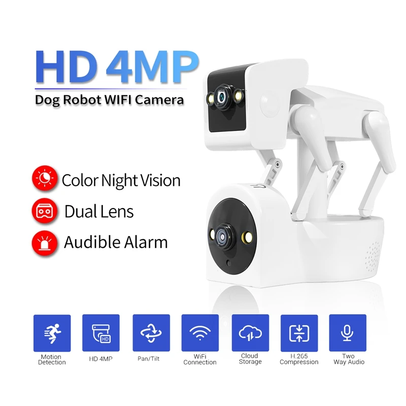 yhpFOJwzSHere you can buy Plastic Robot Dog Camera Full Color PTZ IP Dome Camera Yoosee APP AI Humanoid Detection Baby Monitor-EU Plug with free delivery to your post office.
