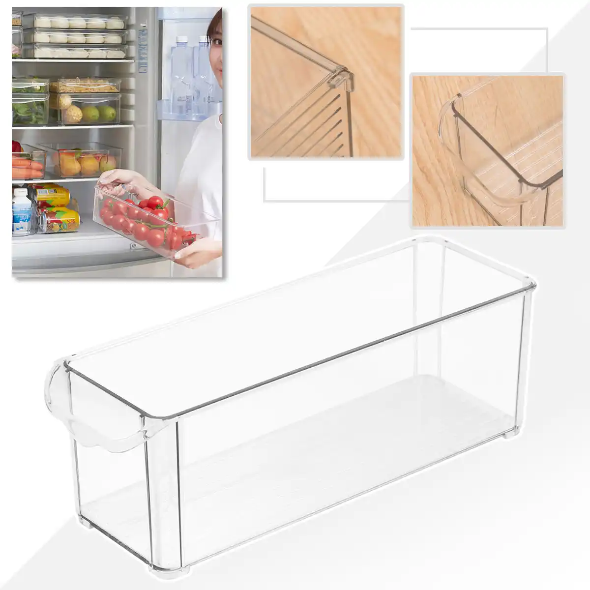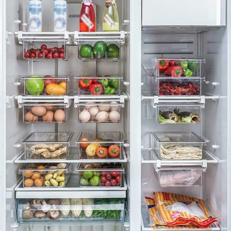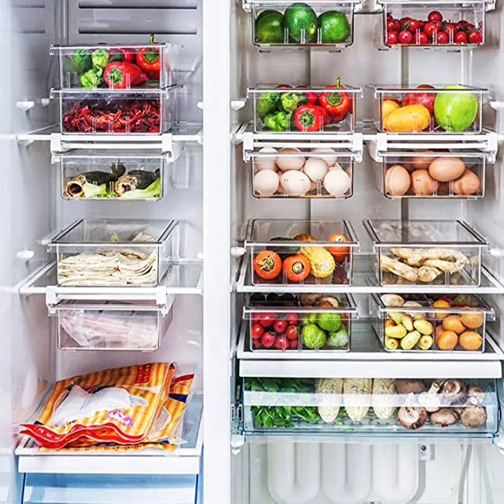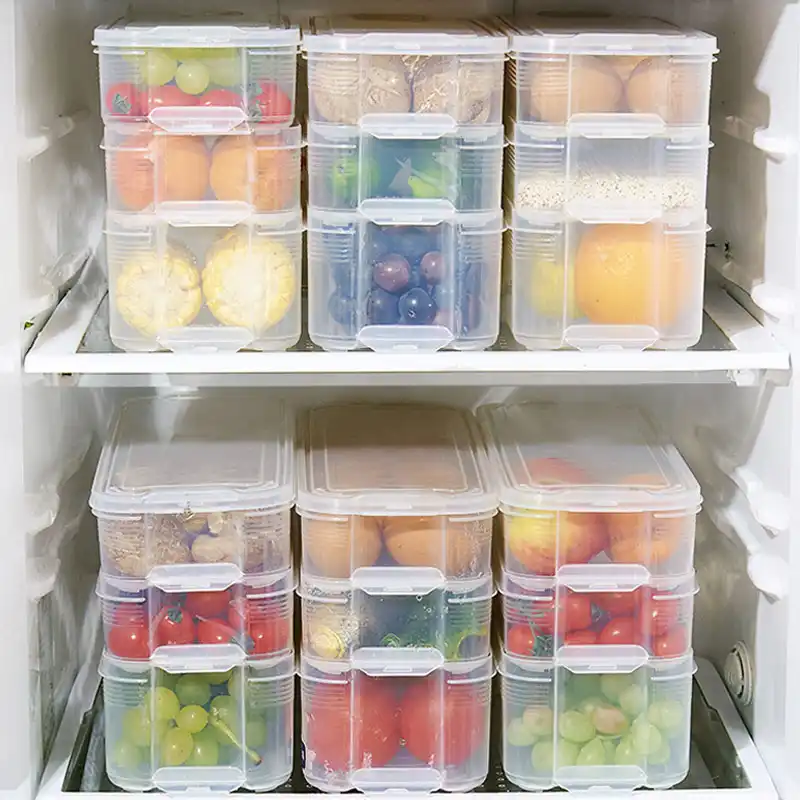 Plastic Storage Bins Refrigerator Storage Box Food Storage Containers With Lid For Kitchen Fridge Cabinet Freezer Desk Organizer