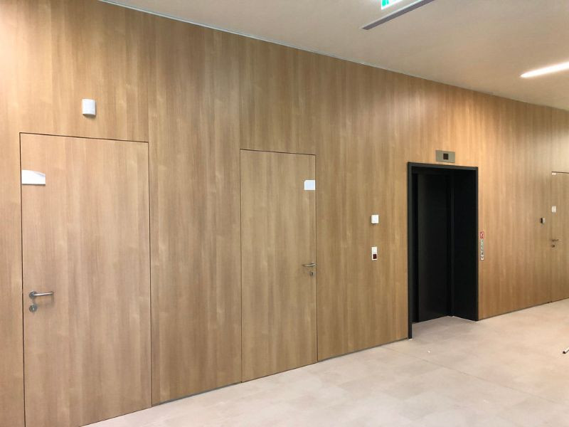 На фото видно, что в примыкающем коридоре стены обшиты такими же листами, но в горизонтальной раскладке . Соответственно, меняя направление кладки, можно зонировать помещение, визуально . . .