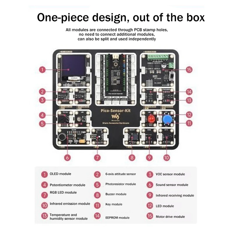 Плата расширения Waveshare для Raspberry Pi RP2040-Plus + комплект модулей датчиков для материнских плат серии Raspberry Pi Pico - Купить с бесплатной доставкой