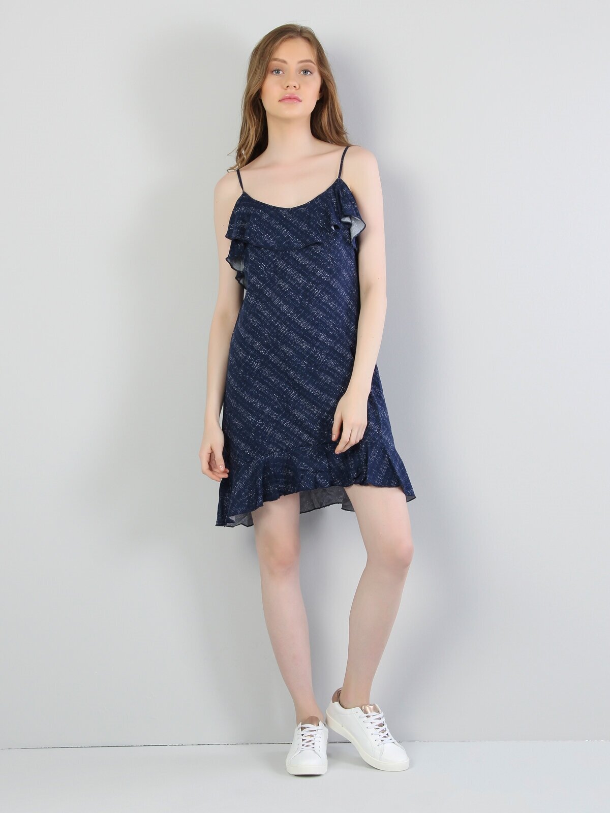 Платье в горошек с оборками и поясом