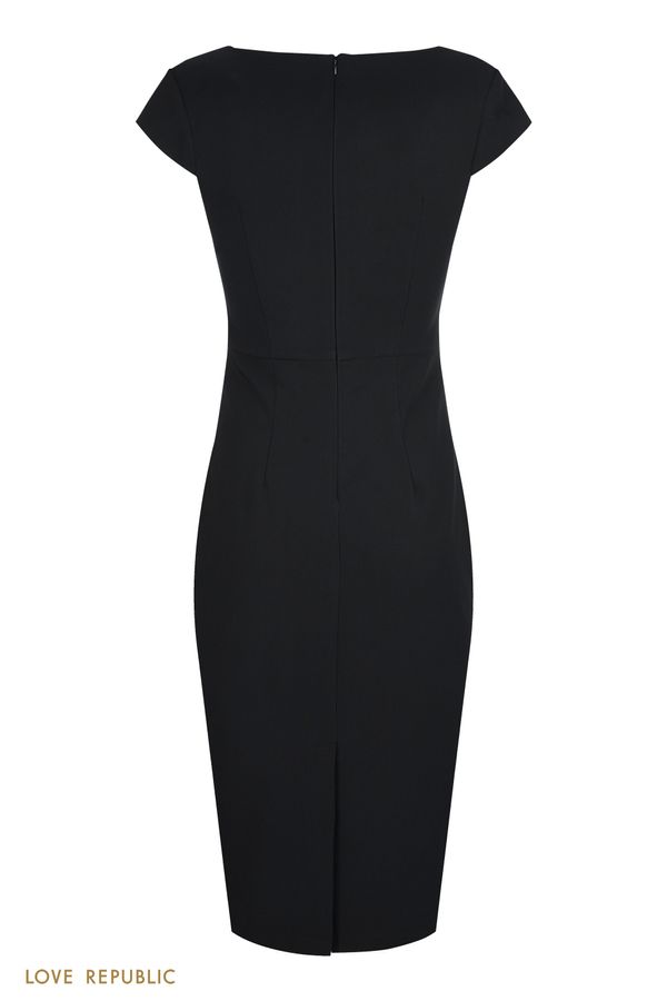 Черное платье-футляр без рукавов с V-образным вырез…
