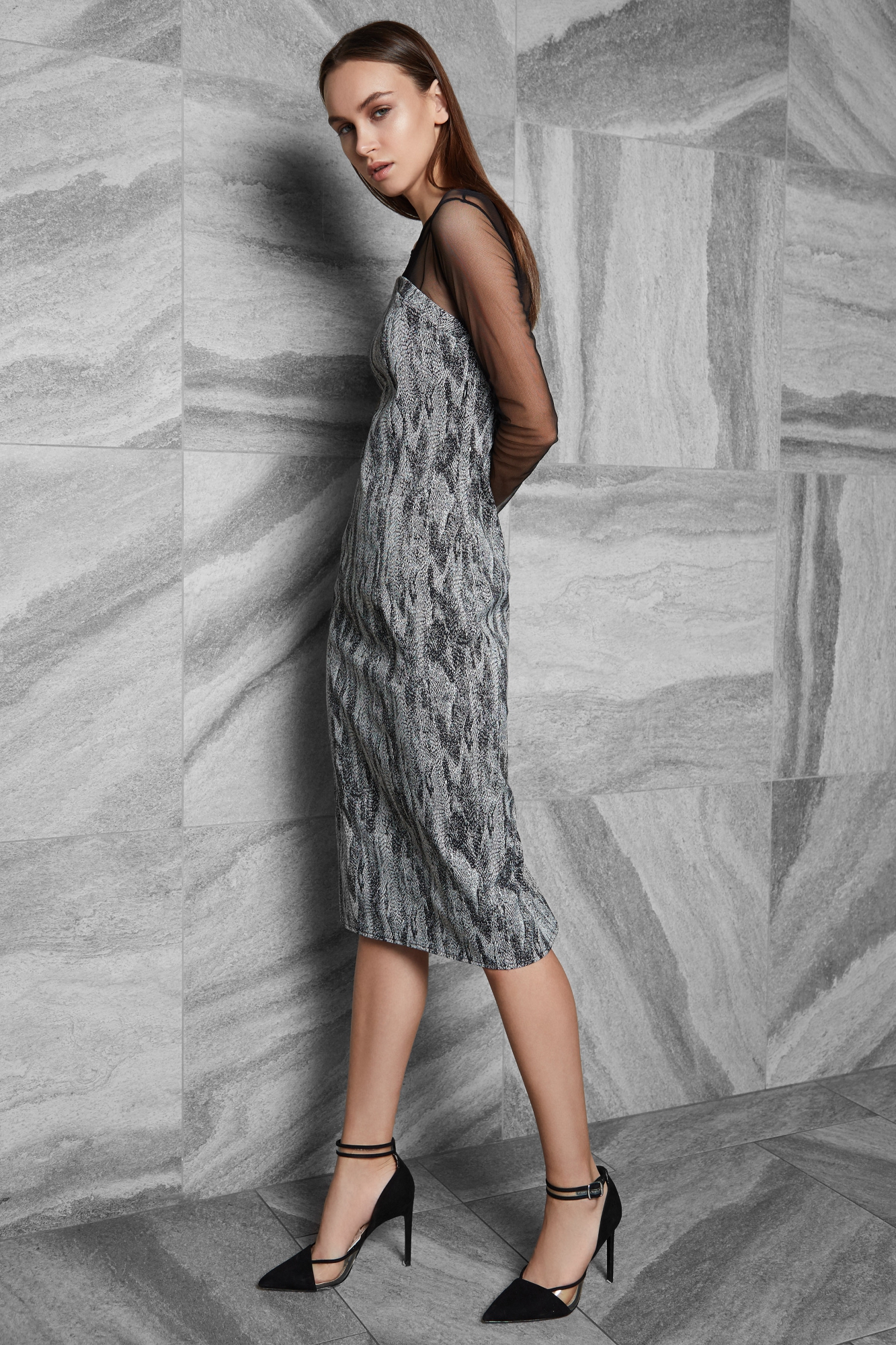 Платье футляр с сеткой сверху