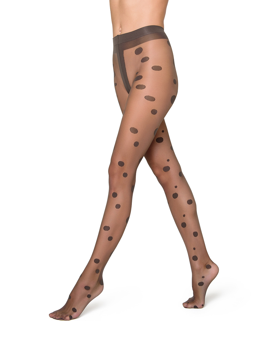 Все дело в том, что черные или коричневые капроновые колготы в однотонный горох (особенно мелкий) делают образ более женственным.
