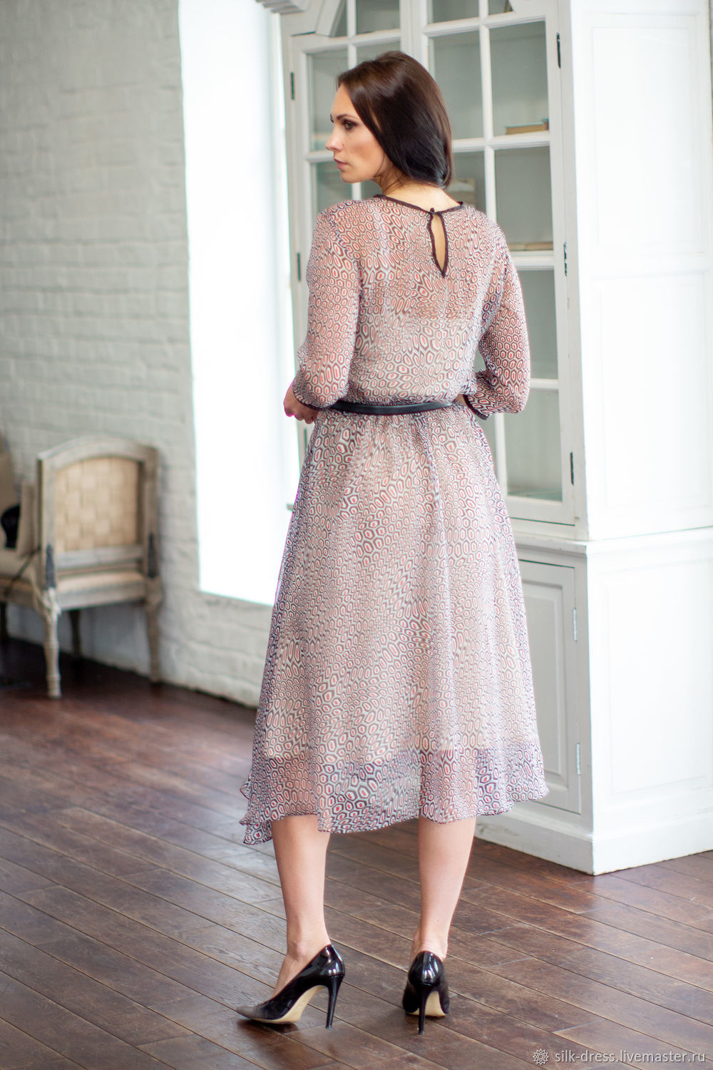 Длинное платье из шифона с кожаным ремнем - Lova Shop