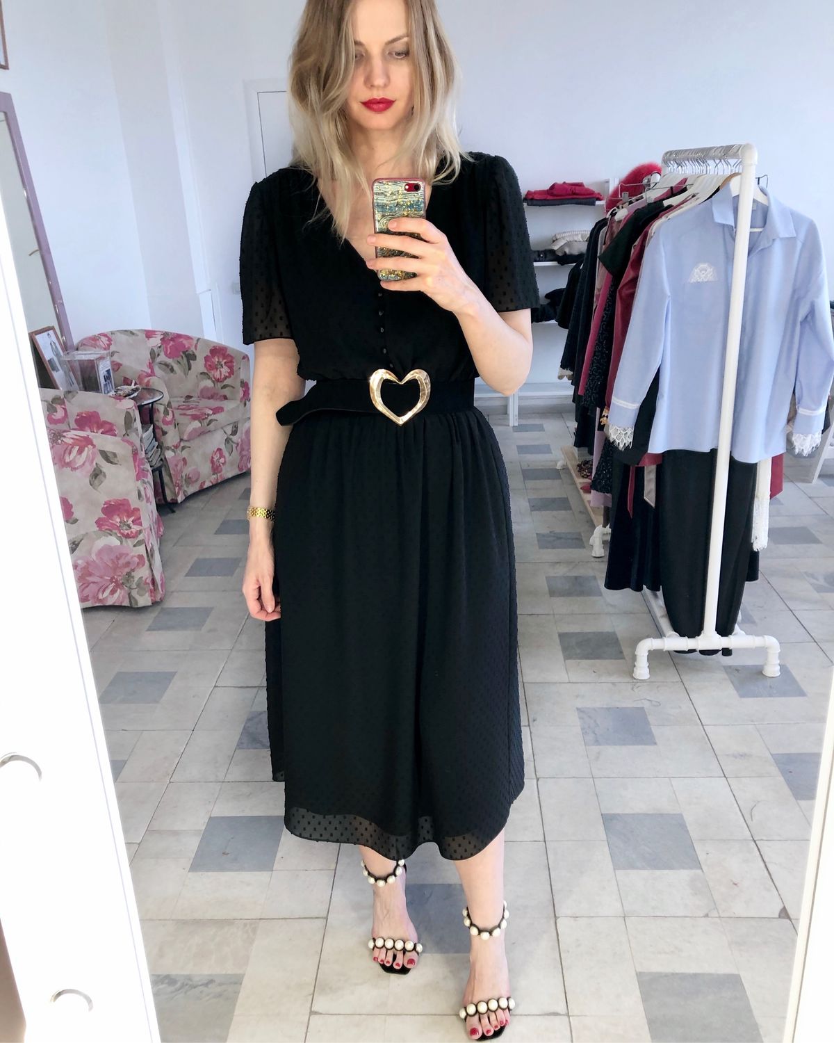 Платье-миди из струящегося шифона с оборками и съемным ремнем