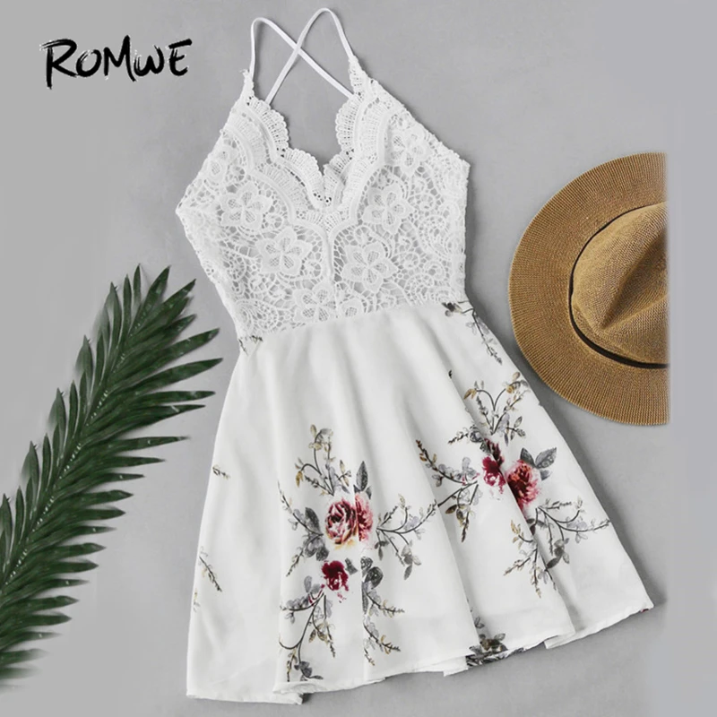 Белое платье из кружева Бохо Летнее платье для женщин V ...