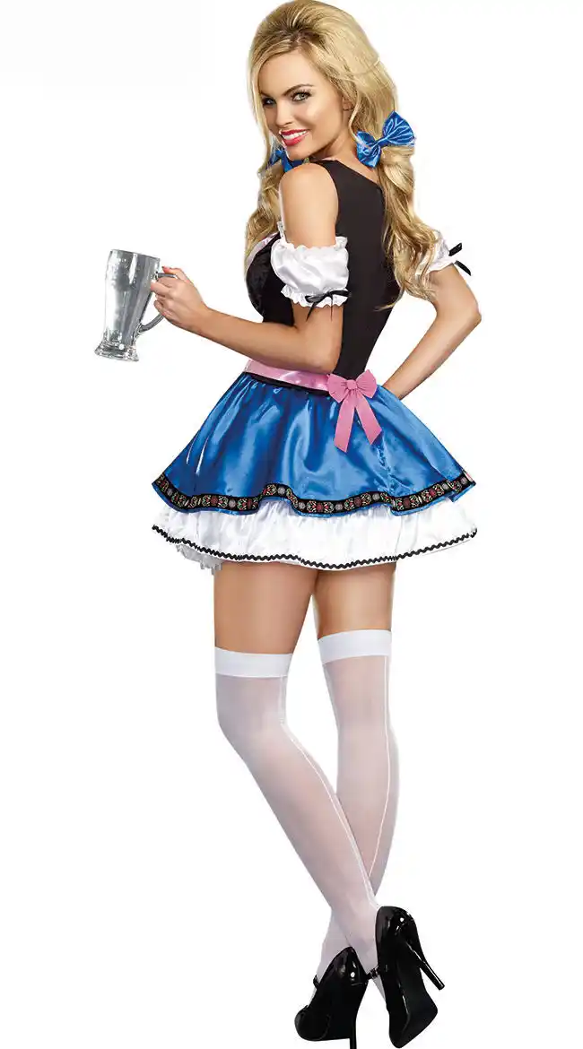 Для женщин светильник голубое платье Пособия по немецкому языку баварское пиво девушка костюм Стиль милые девушки топы белого цвета + плать...