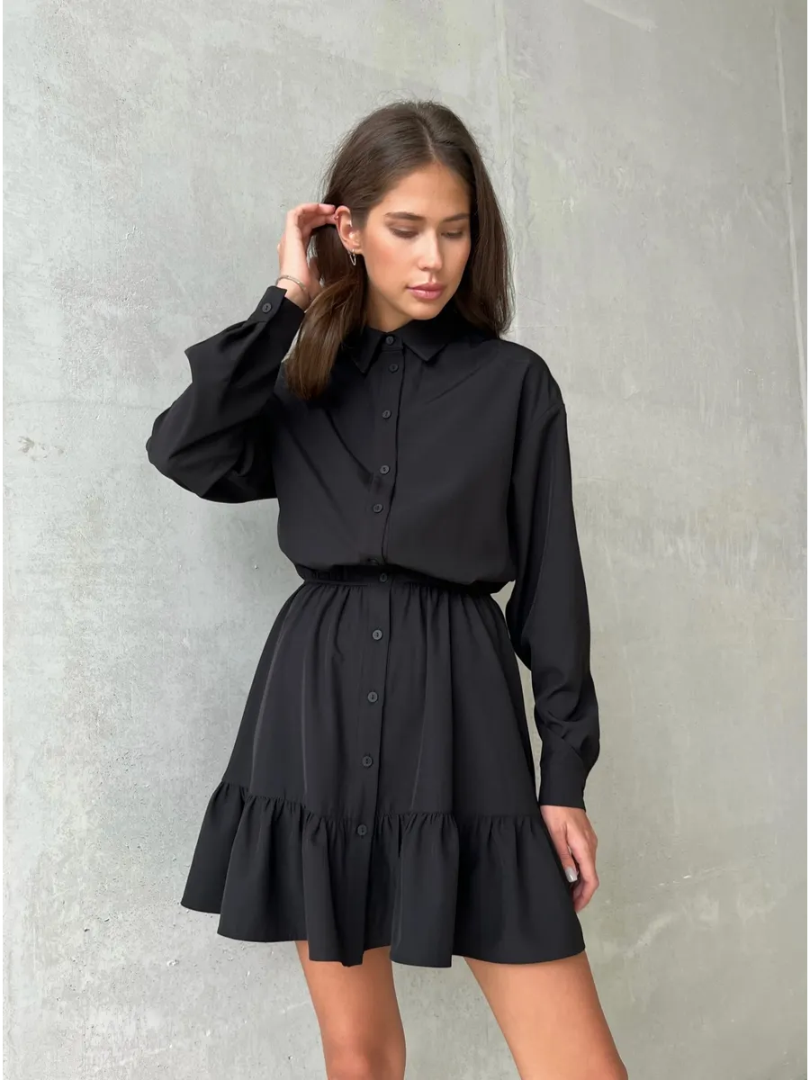 Платье Рубашка Черное Фото