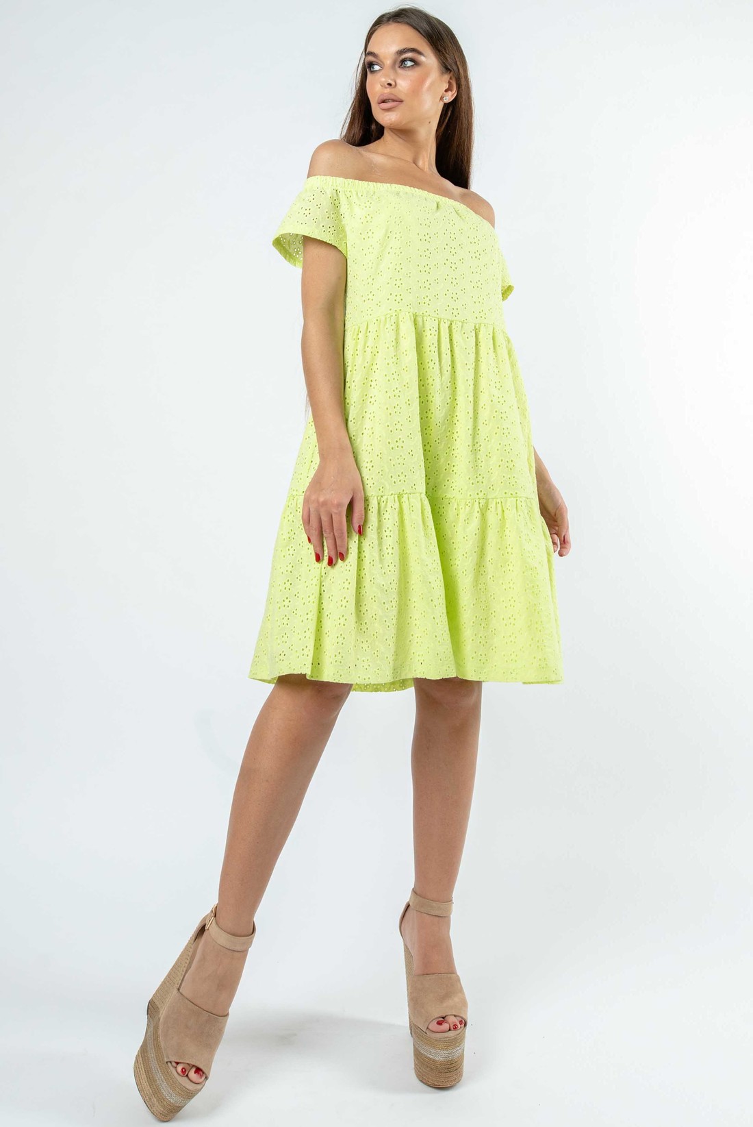 Платье-рубашка с воланами - LIME