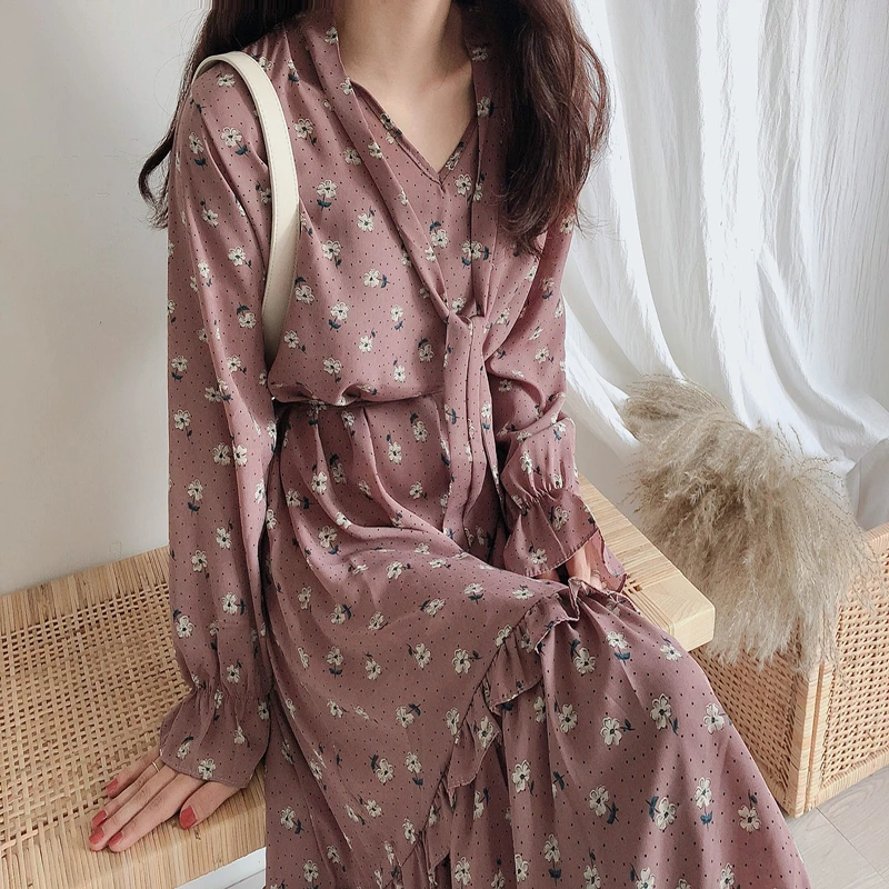 Hot saleВельвет с цветочным принтом с длинным рукавом ...