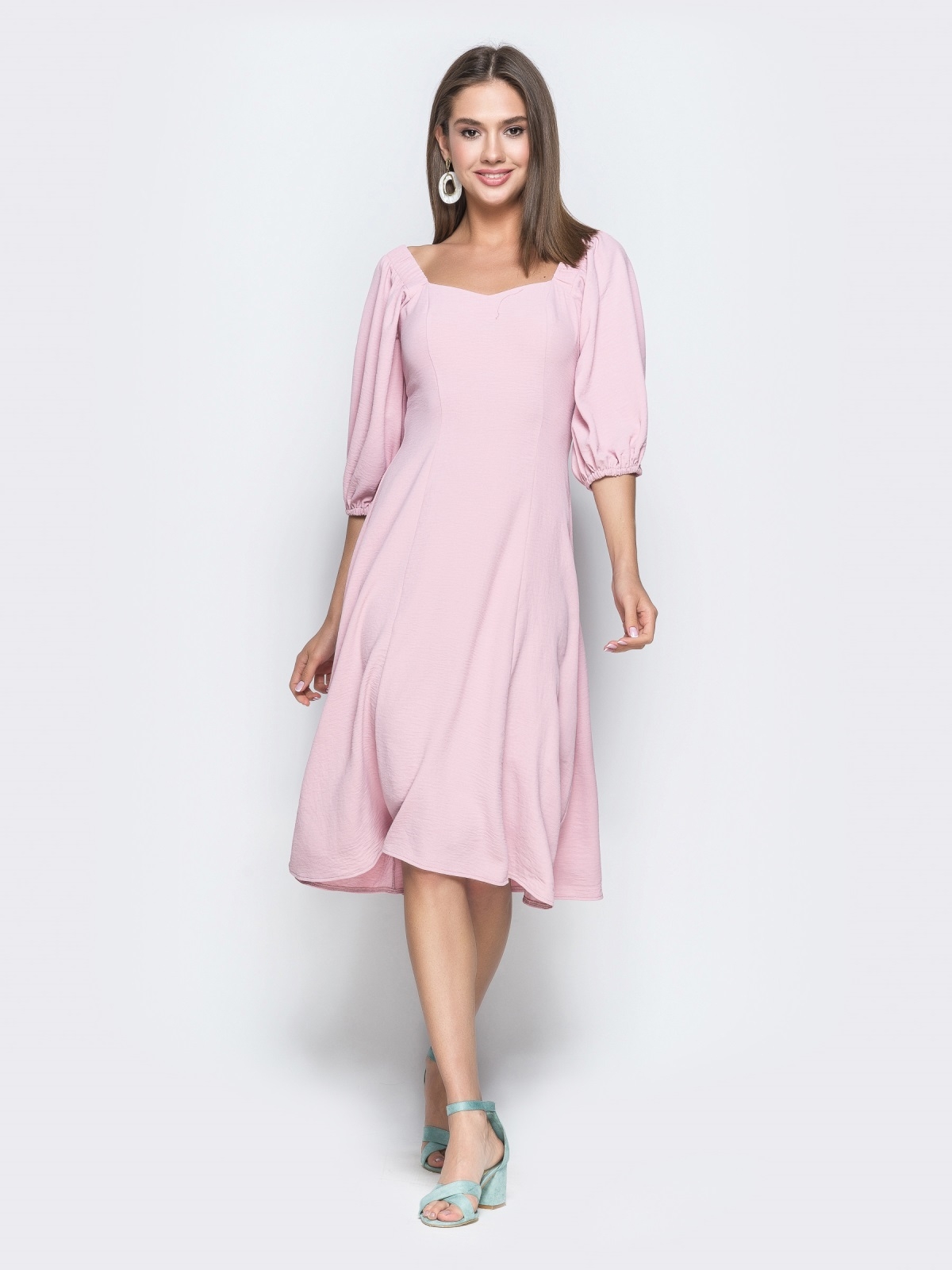 Сделать покупку однотонного платья с вырезом кармен в ...