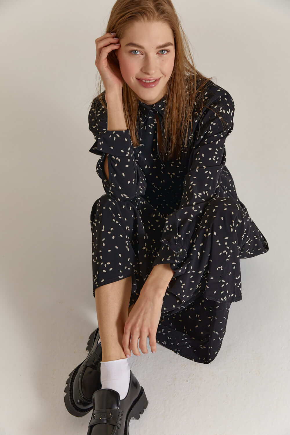 Ajiotaje / Синее платье в горох с вырезом Кармен | платья ...