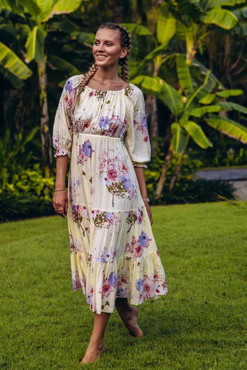 Платье Гаури обновленное (длина миди, цвет желтые цветы)