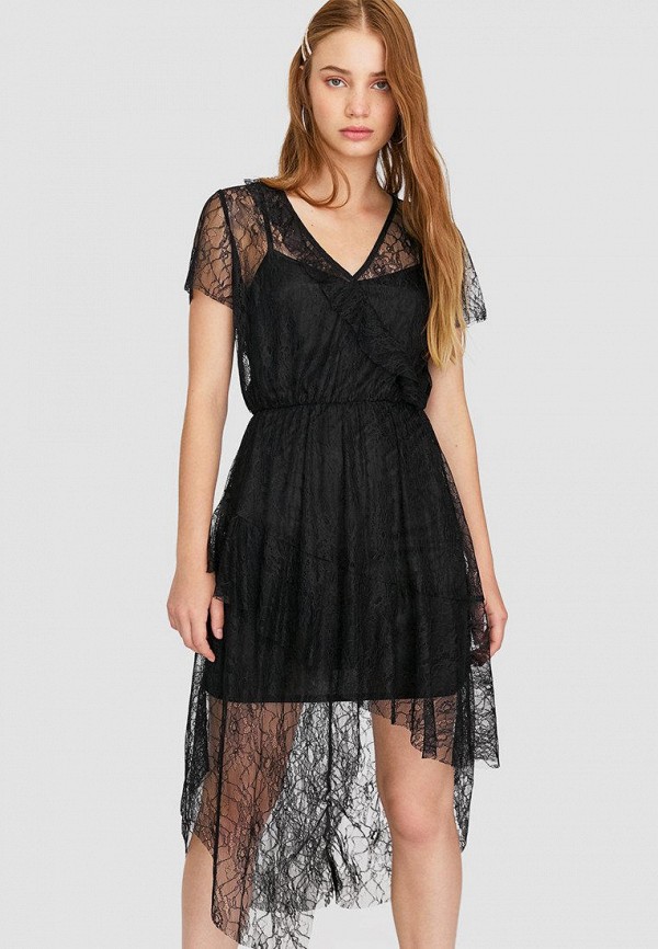 Платье Stradivarius черное в цветочек ассиметричны купить ...