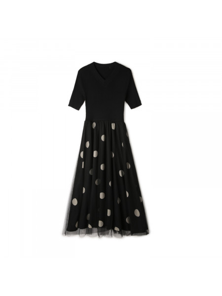 Платье с разрезом и далматинским принтом