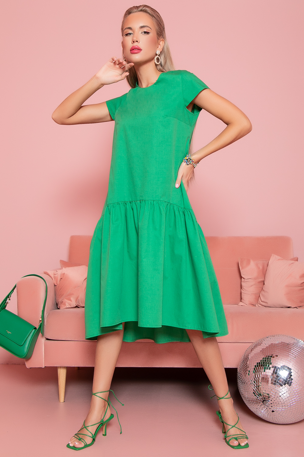 Платье розовое с зеленым