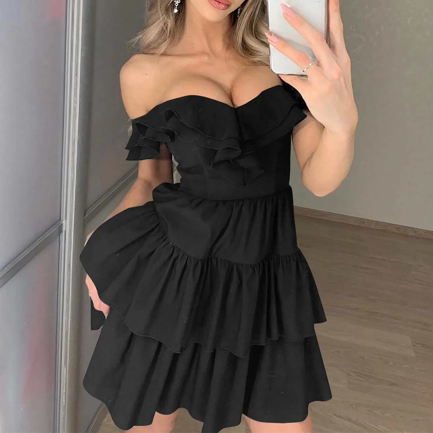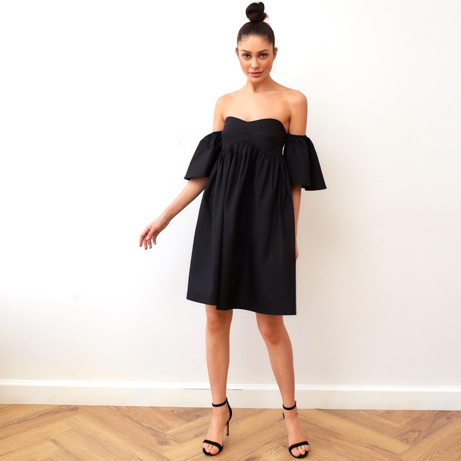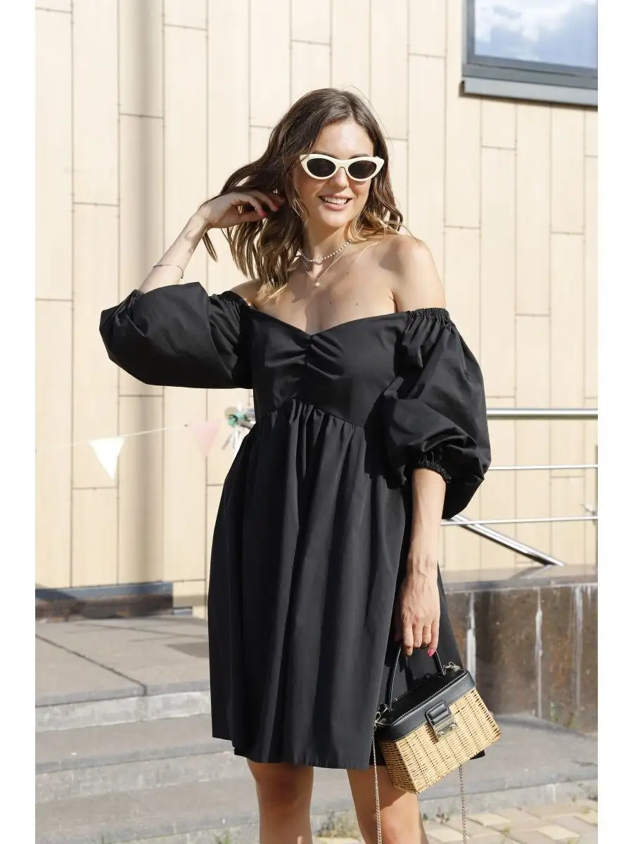 Платье с открытыми плечами и юбкой