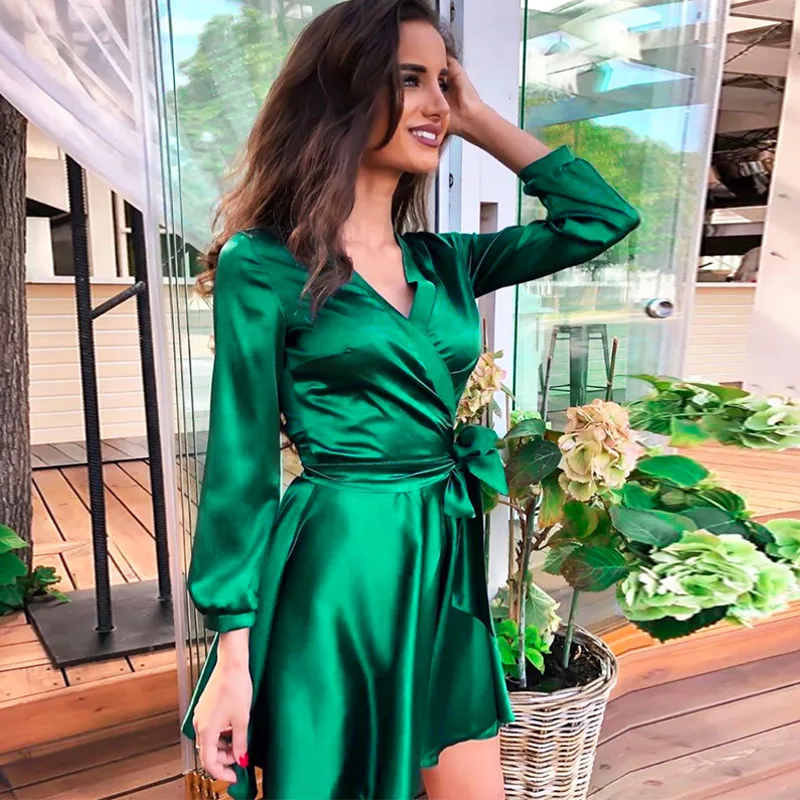 Платье запахом зеленое 81 фотографий