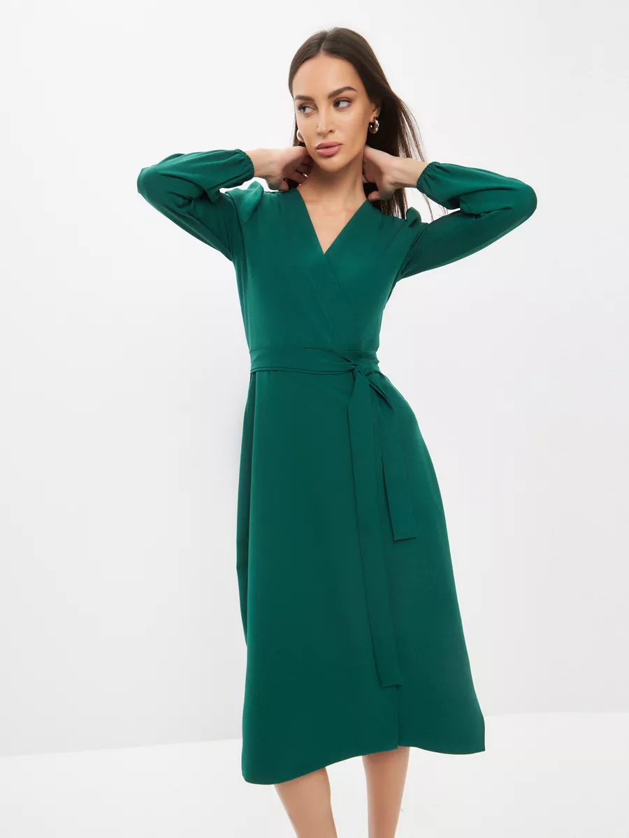 Платье запахом зеленое