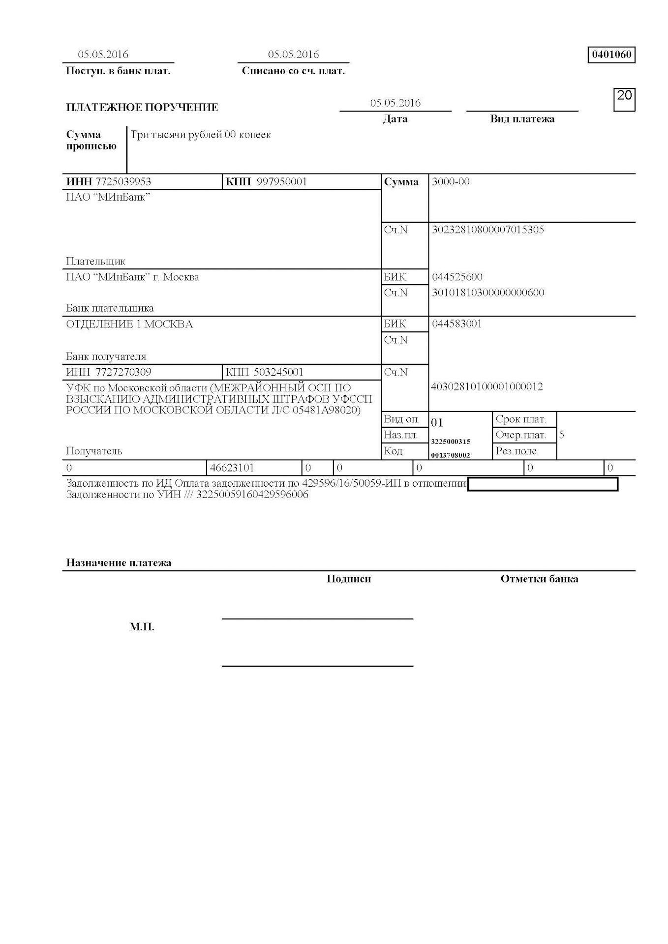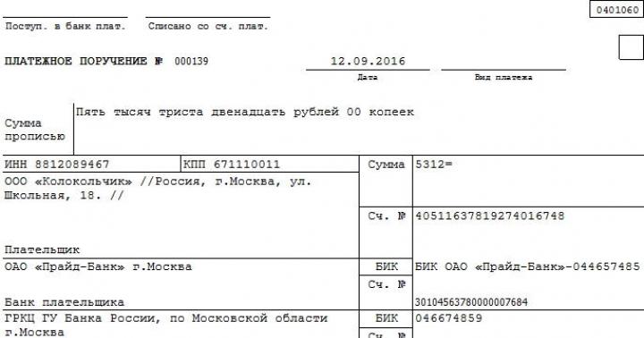 Платежка бланк