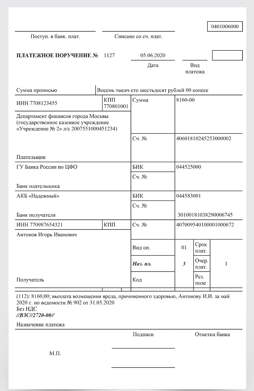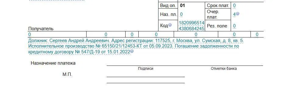 Платежное поручение по исполнительному листу работнику
