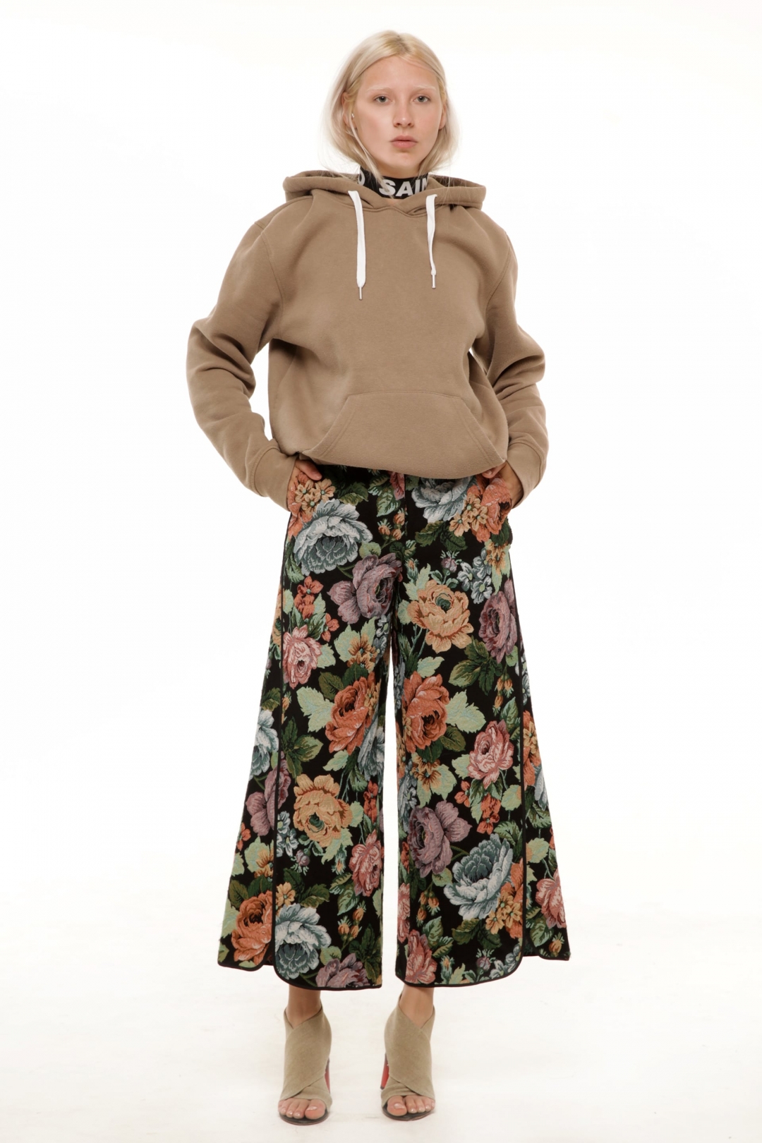 Коктейльное платье X-силуэта выполнено из ткани с цветочным принтом и украшено двумя черными бантами на лифе. Дизайн сочетает в себе 80-е, рококо и щепотку декаданса.