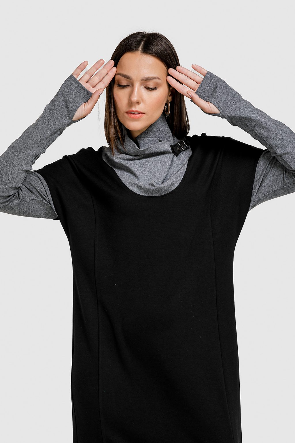 Короткое серое платье с белым воротником