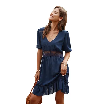 С оборками Одноцветный Повседневный Платье